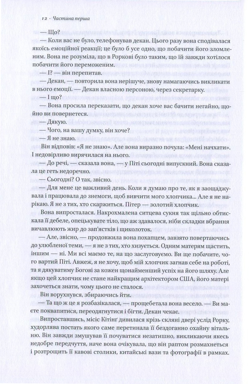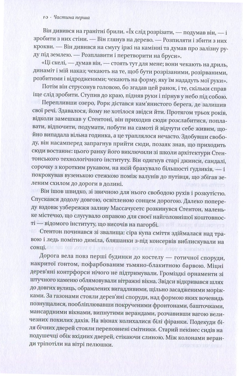 Уявіть, що ви народилися у першій половині ХХ століття в США і раптом виявили, що люди, маючи радіо, газети, кораблі та літаки, досі живуть у будинках, зведених у грецькому стилі. Вони не сприймають нічого, крім фронтонів, химерних статуеток, карнизів та колон… Відмовляються бачити прогрес. Саме в такій ситуації опиняється головний герой роману – талановитий архітектор Говард Рорк. Він навіть не намагається відкрити оточенню очі на абсурдність ситуації, а просто виконує свою роботу. Таких як він – тих, хто має власну думку – суспільство кличе егоїстами, вважає «хворими» і неправильними. Перед ним зачиняють двері і всіляко намагаються виштовхнути подалі від епіцентру архітектурного життя. Що ж вчинить герой та чи справді бути егоїстом погано?