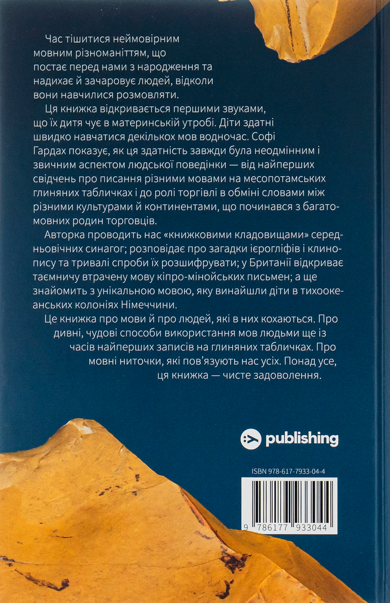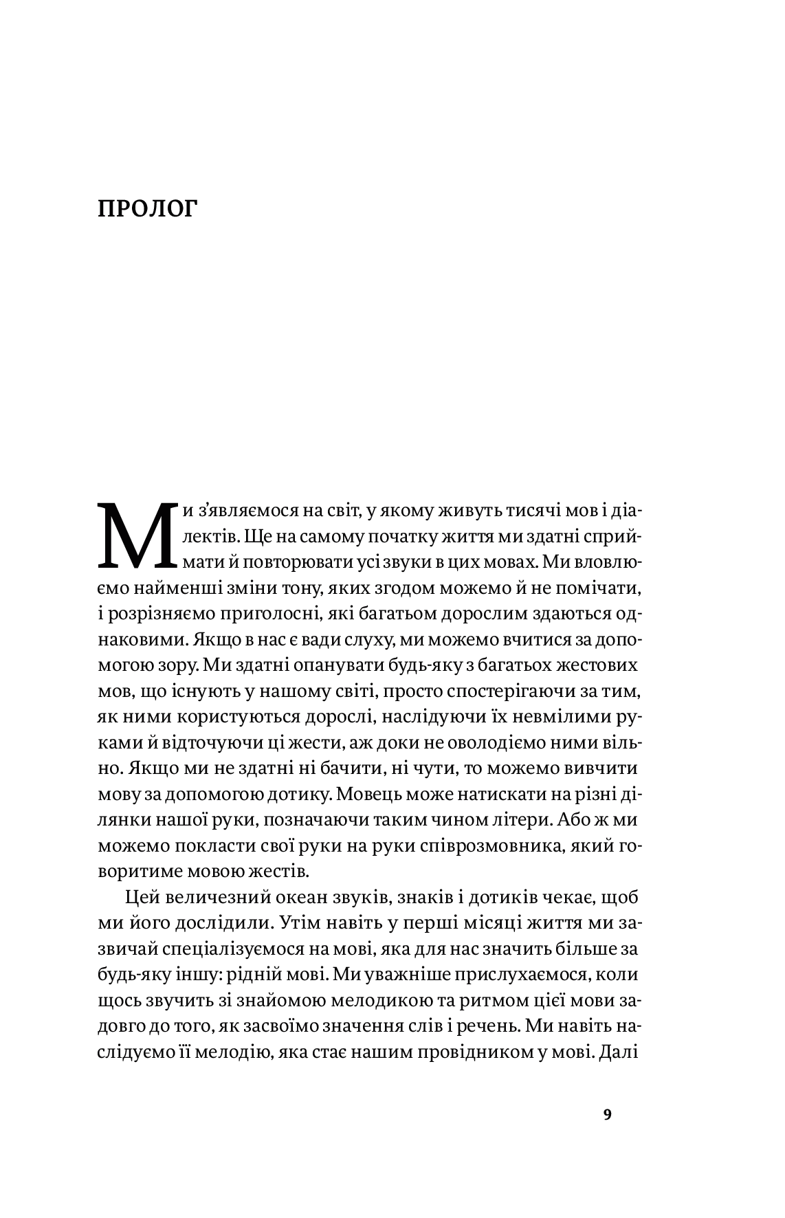Час тішитися неймовірним мовним різноманіттям, що постає перед нами з народження та надихає й зачаровує людей, відколи вони навчилися розмовляти. Ця книжка відкривається першими звуками, що їх дитя чує в материнській утробі. Діти здатні швидко навчатися декількох мов водночас. Софі Гардах показує, що ця здатність завжди була неодмінним і звичним аспектом людської поведінки — від найперших свідчень про писання різними мовами на месопотамських глиняних табличках і до ролі торгівлі в обміні словами між різними культурами й континентами, що починався з багатомовних родин торговців.