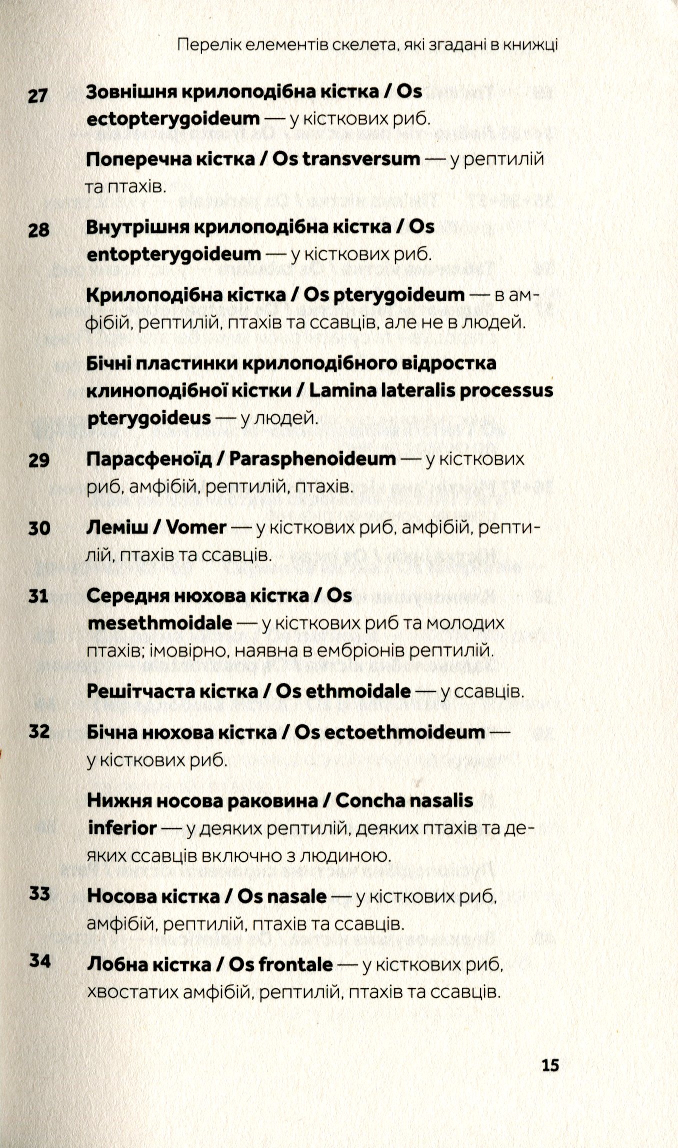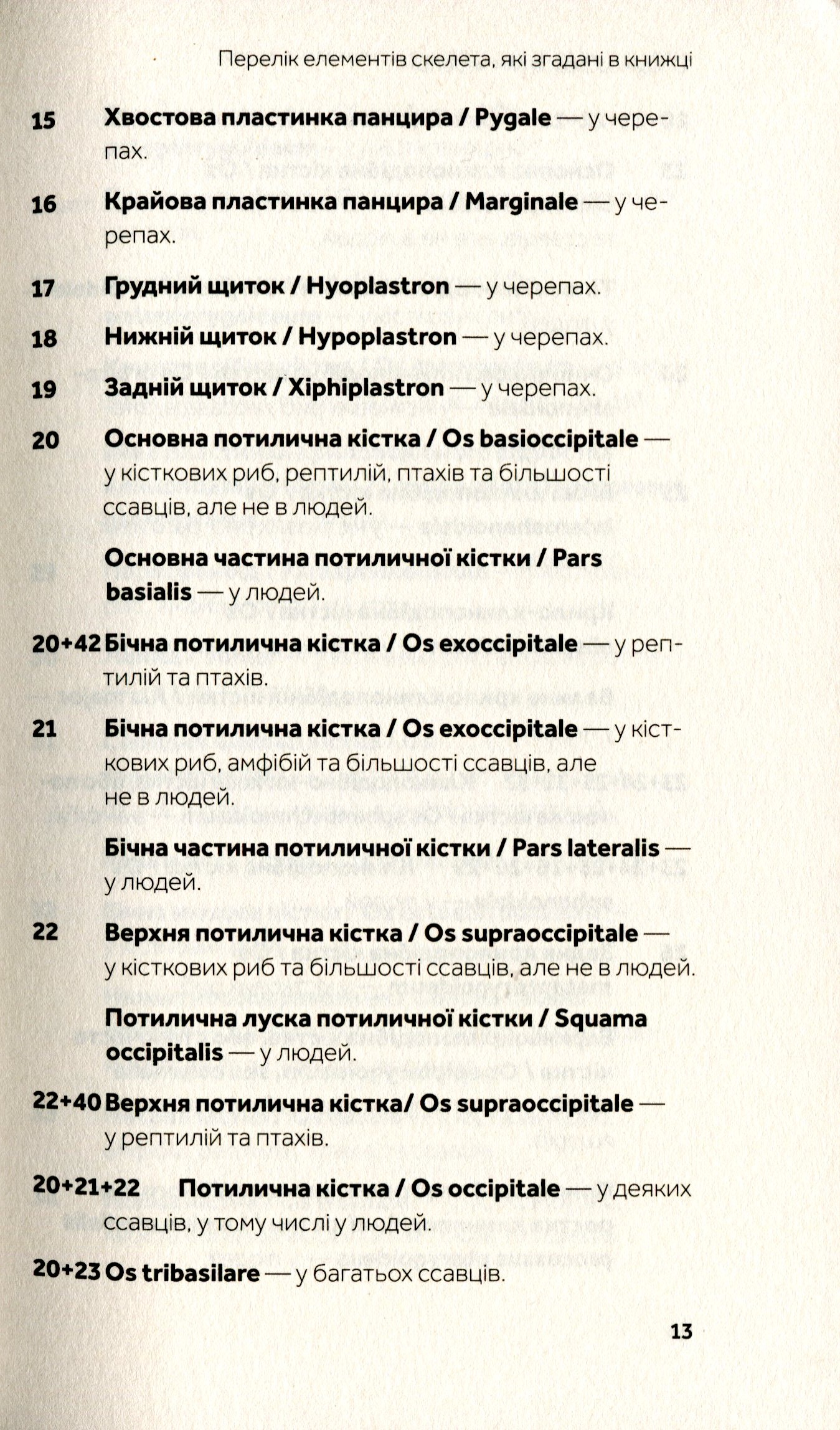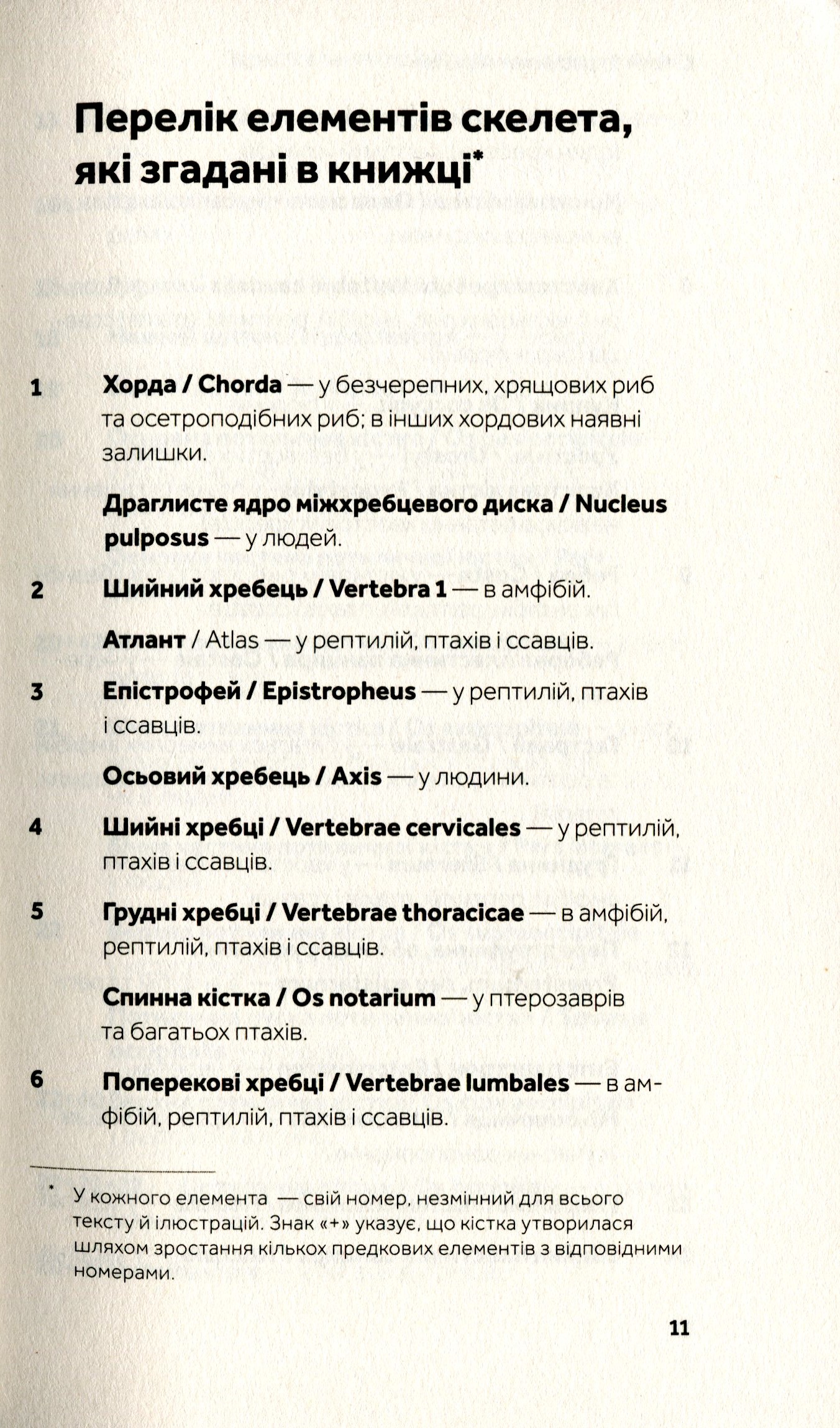 Що таке ген «їжачок сонік», навіщо жабам «відмовлятися» від ребер і чому крокодиляче м’ясо на смак нагадує курятину? Чому очі розміщені на голові, а не, скажімо, на руках та чи справді кінцівки — то колишні плавці? Яка риба за швидкістю може обігнати гепарда та який палець довелося б ампутувати, якби ми пересувалися, як рептилії? Чому восьминоги, попри великий мозок, часом бувають тупіші, ніж бджоли, і що спільного в акул з літаками? Автор книжки відповідає на ці й інші питання, водночас пояснюючи, чим внутрішній скелет крутіший за зовнішній і як відрізнити колегу від рептилоїда.