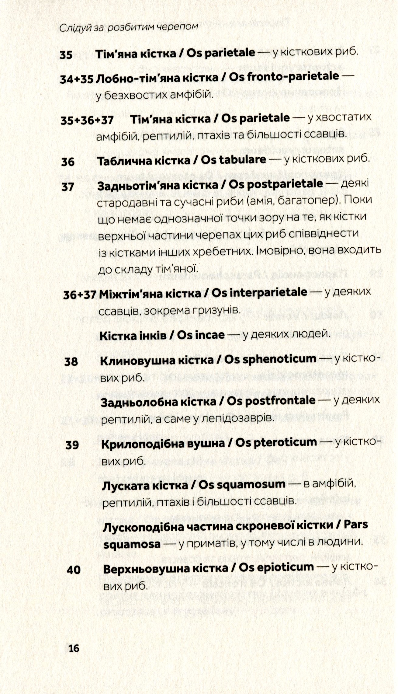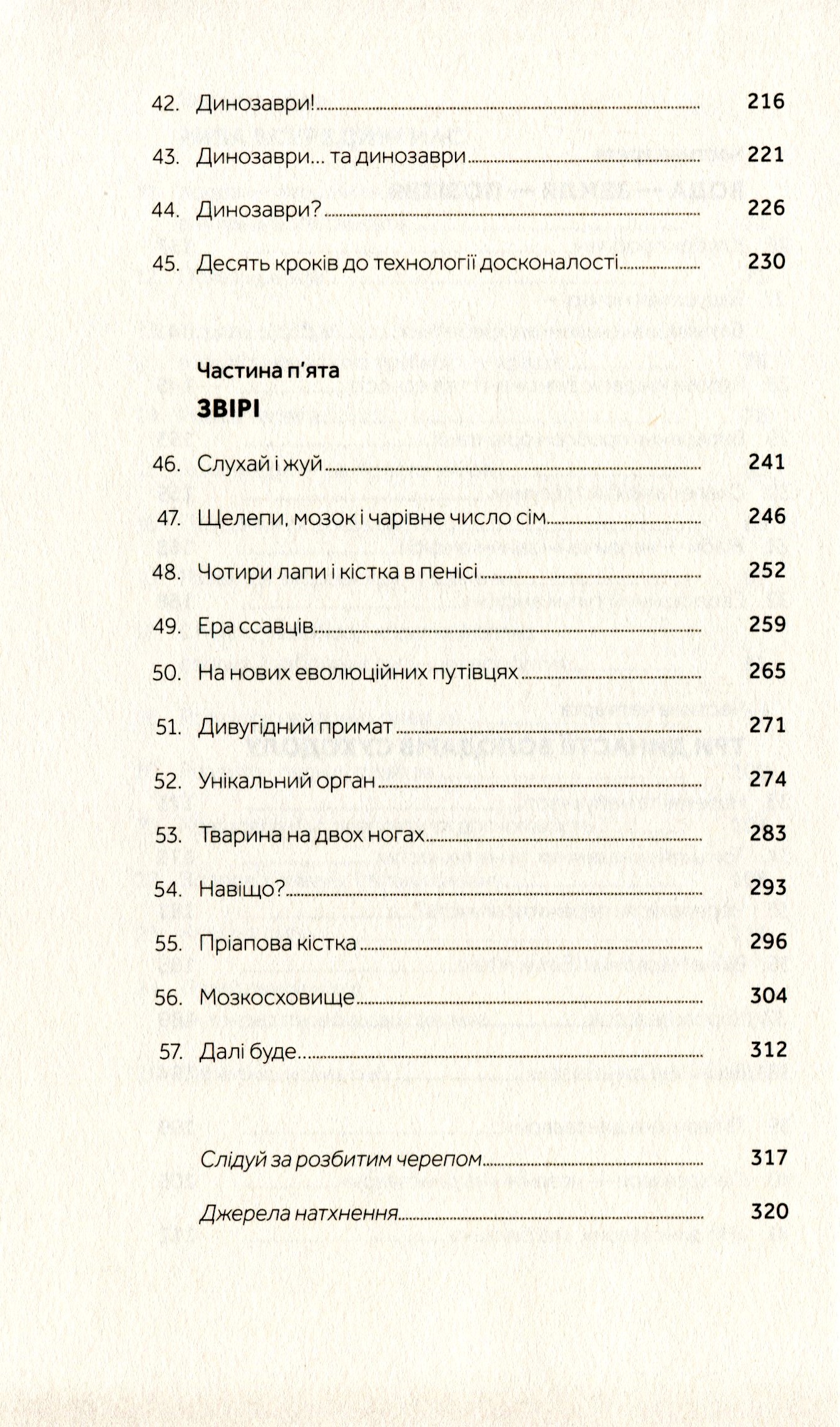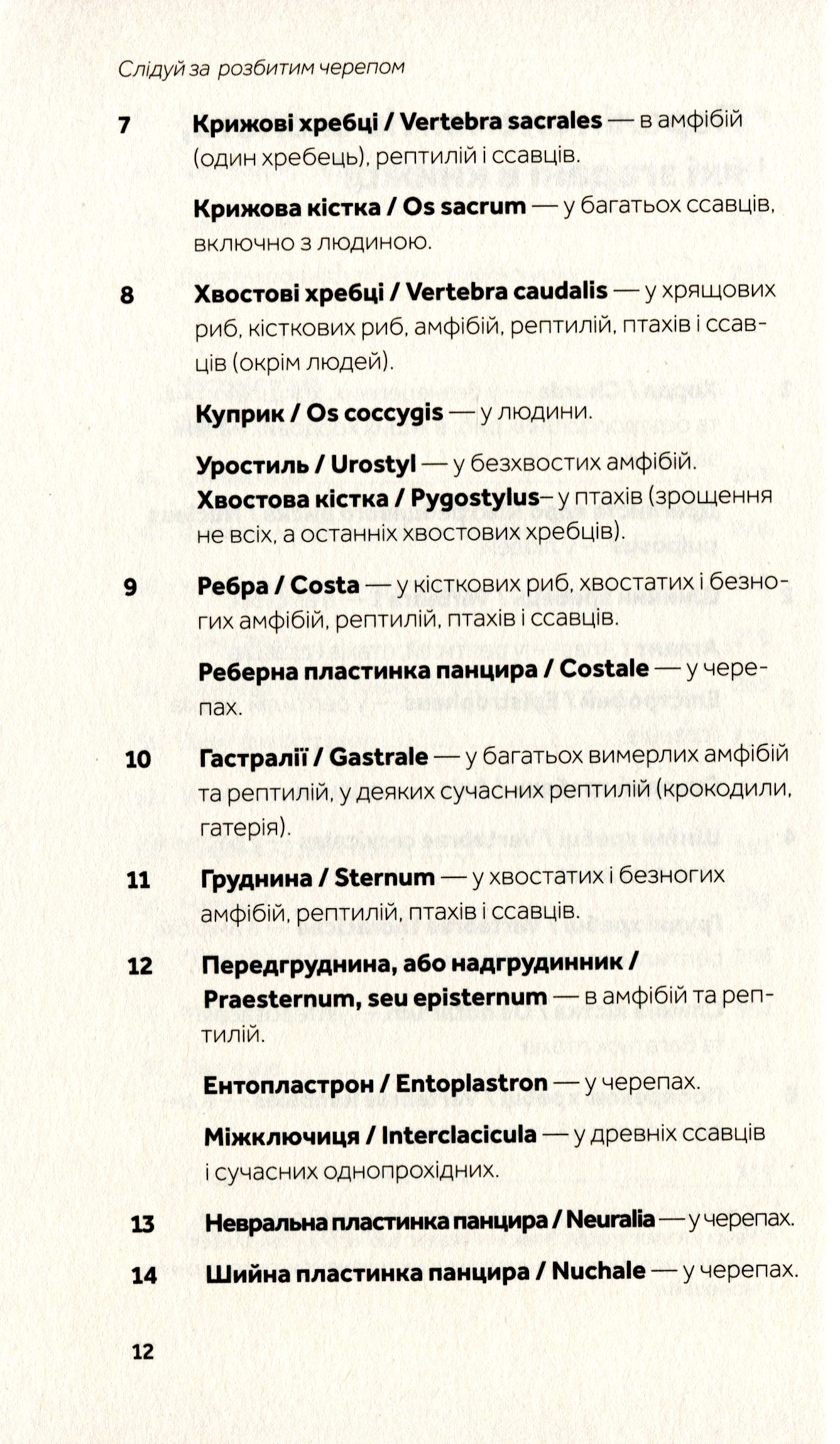 Про все це у своїй книжці «Слідуй за розбитим черепом. Історія еволюції скелета» розповідає науковець Леонід Горобець. Він скрупульозно простежує, як змінювалися скелет і кістки, пояснюючи на динозаврах, людях і навіть рибах, як працювала всі ці роки еволюція.