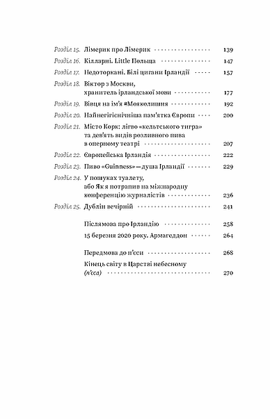 Усе, що ви знаєте про Ірландію, — правда, але…. Але все трішечки не так. «Доля дала цьому острову божественну красу й пекельне горе. Його історія послідовно закручується за спіраллю, наче це безкінечний, розтягнутий на століття День байбака: міжчасся-трагедія, міжчасся-трагедія, міжчасся-трагедія. Вельми схоже на Україну» — описує Ірландію мандрівник і письменник Максим Беспалов.