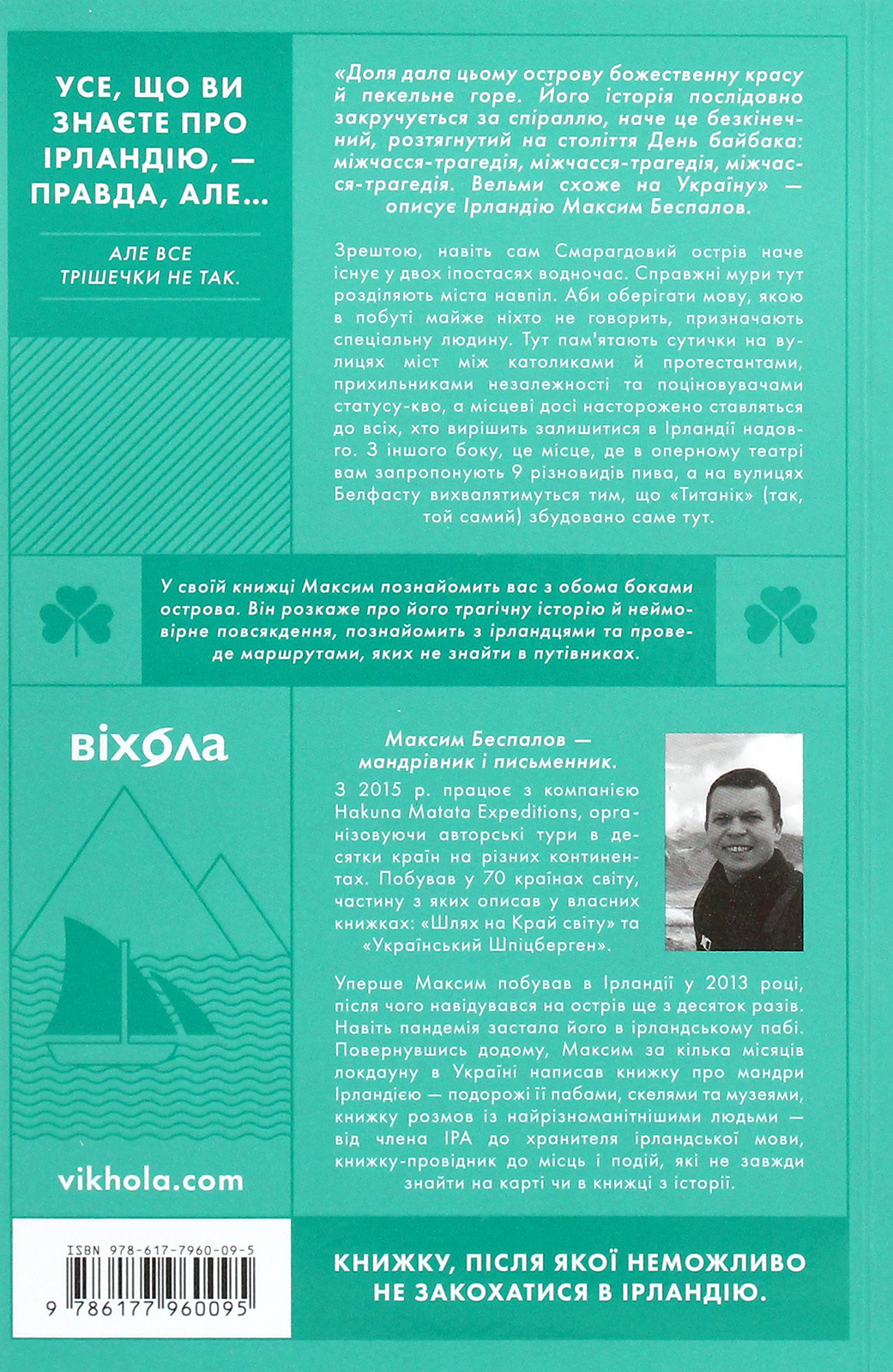 У своїй книжці Максим познайомить вас з обома боками острова. Він розкаже про його трагічну історію й неймовірне повсякдення, познайомить з ірландцями та проведе маршрутами, яких не знайти в путівниках.