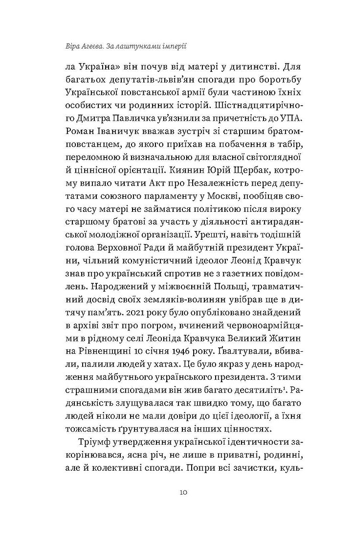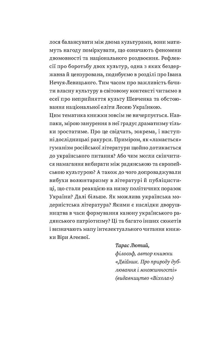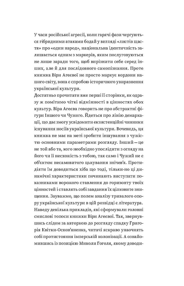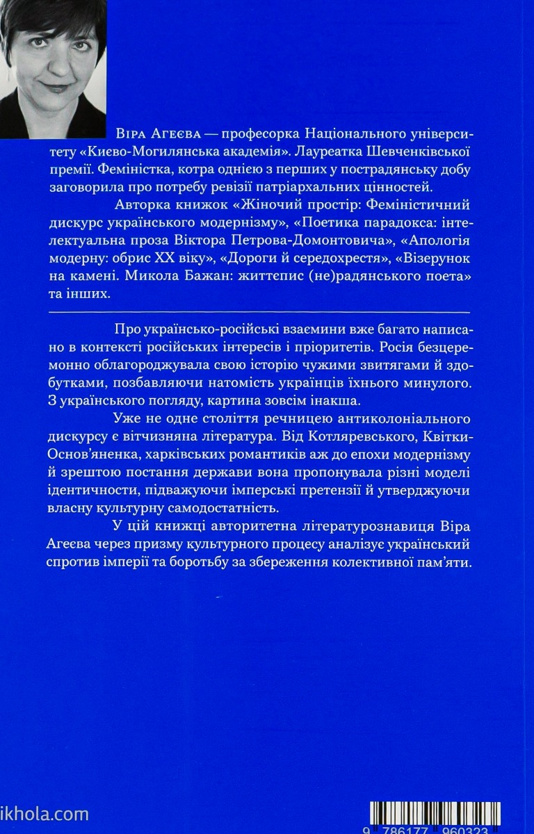 У цій книжці авторитетна літературознавиця Віра Агеєва через призму культурного процесу аналізує український спротив імперії та боротьбу за збереження колективної пам’яті.